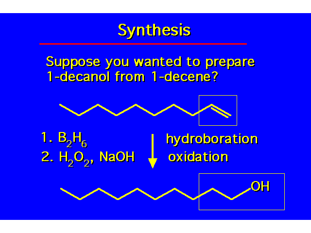 Formation of the 1-decanol would entail anti-Markovnikov addition of water to the alkene. Antil-Markovnikov alcohols cannot be made by acid-catalyzed hydration. | ![]() |