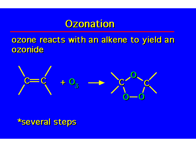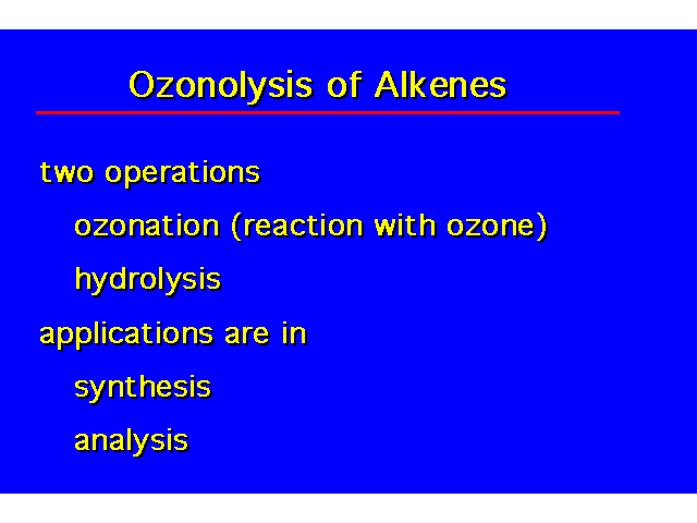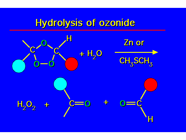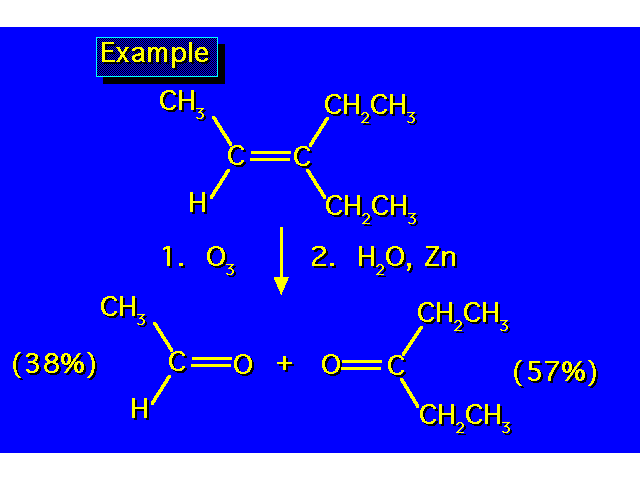 | The structure of an unknown alkene can be determined from the products of the ozonolysis reaction. The carbons that are carbonyls in the products were part of a C=C in the original compound. | ![]() |