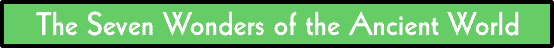 | Temple of Artemis | Mausoleum at Halicarnassus | Colossus of Rhodes | Hanging Gardens of Babylon | Pyramids of Egypt | Lighthouse of Alexandria | Statue of Zeus at Olympia | |