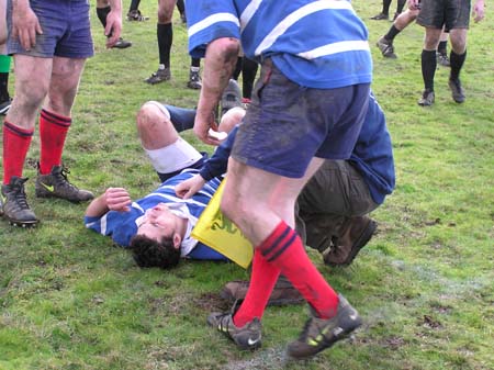 Rugby is a tough game and it should not be done without a lot of practice!!! This guy was hit by WOU rugger and left the game with a concussion and sprained ankle. If you are going to play,I would highly recomend to train before you try out, and also attempt to gain some knowledge of the game from a team in the area like your very own, WOU Wolves.